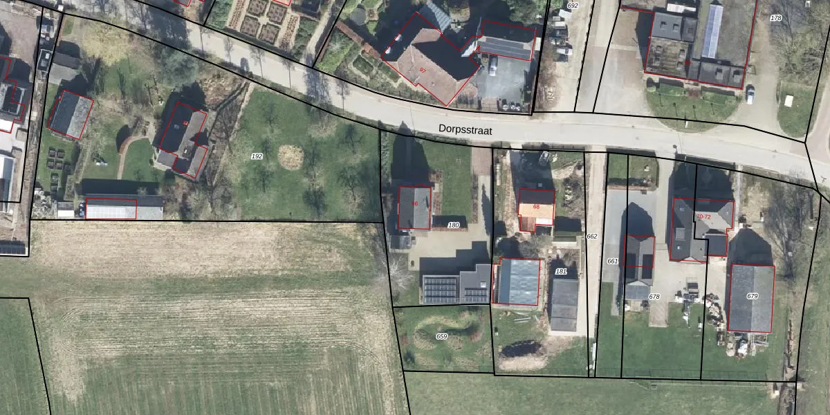 Het perceel waarop Dorpsstraat 66 staat heeft een oppervlakte van 1040 m². Dit is een zeer groot perceel. De perceeloppervlakte wordt geregistreerd door het Kadaster. Gedetailleerde informatie over de maten van dit perceel kunt u vinden in het rapport Kadastrale kaart met maatvoering van Dorpsstraat 66.