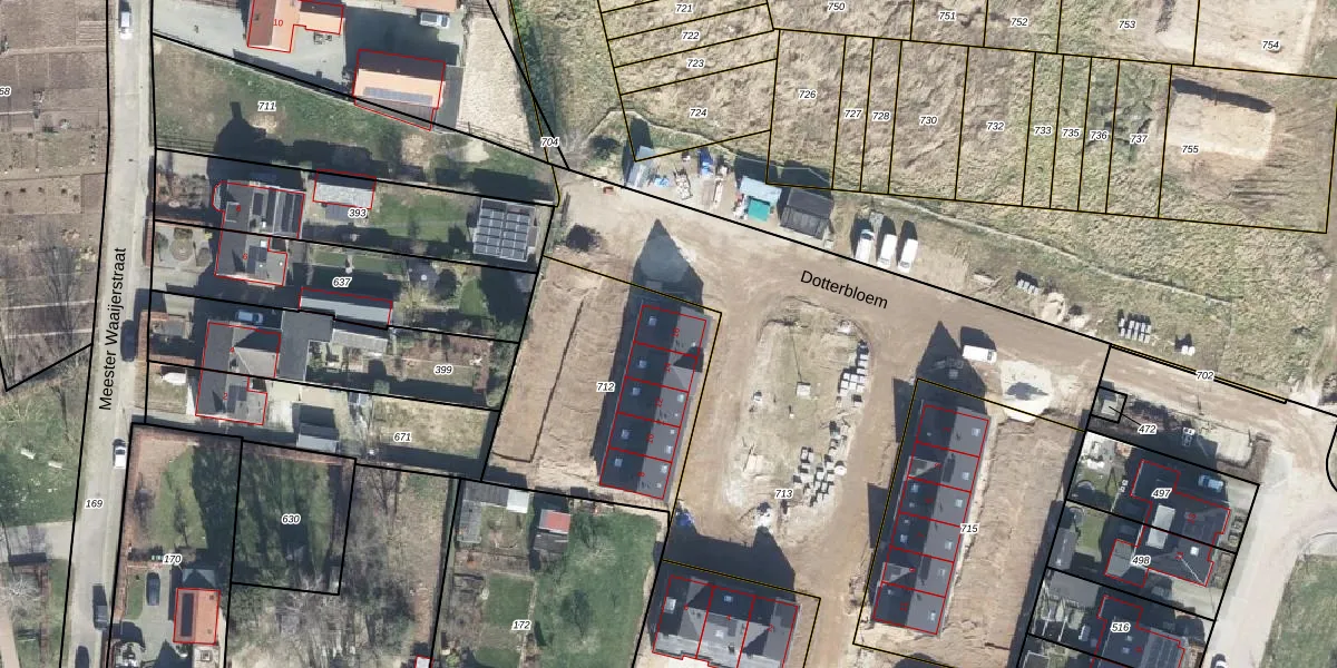 Dotterbloem 16 is gelegen op kadastraal perceel AGL00K712. Deze kadastrale aanduiding is uniek en wordt gebruikt door het Kadaster om eigendomsrechten en andere zakelijke rechten vast te leggen. Het perceel maakt onderdeel uit van de kadastrale gemeente Angerlo.