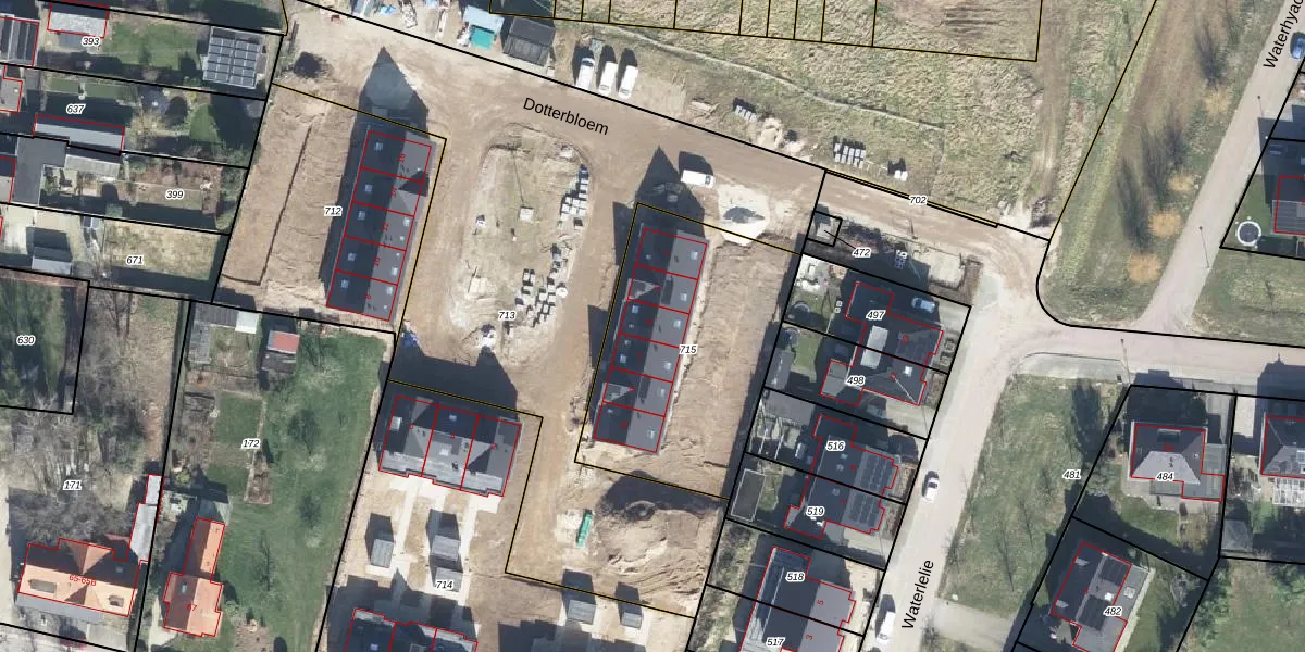 Dotterbloem 5 is gelegen op kadastraal perceel AGL00K715. Deze kadastrale aanduiding is uniek en wordt gebruikt door het Kadaster om eigendomsrechten en andere zakelijke rechten vast te leggen. Het perceel maakt onderdeel uit van de kadastrale gemeente Angerlo.