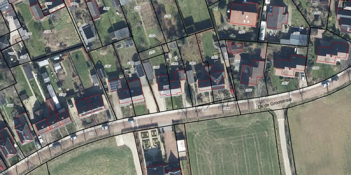 Ds de Grootstraat 25 is gelegen op kadastraal perceel AGL00B1400. Deze kadastrale aanduiding is uniek en wordt gebruikt door het Kadaster om eigendomsrechten en andere zakelijke rechten vast te leggen. Het perceel maakt onderdeel uit van de kadastrale gemeente Angerlo.