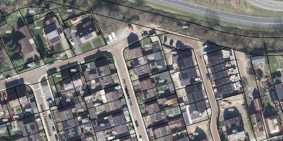 Gebruik de zoekbalk of klik op een perceel voor informatie over de adressen binnen dit perceel.
