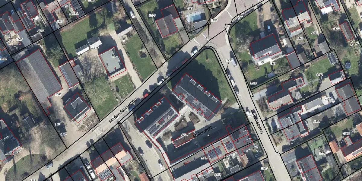 Het perceel waarop Molenveld 3 staat heeft een oppervlakte van 2655 m². Dit is een zeer groot perceel. De perceeloppervlakte wordt geregistreerd door het Kadaster. Gedetailleerde informatie over de maten van dit perceel kunt u vinden in het rapport Kadastrale kaart met maatvoering van Molenveld 3.