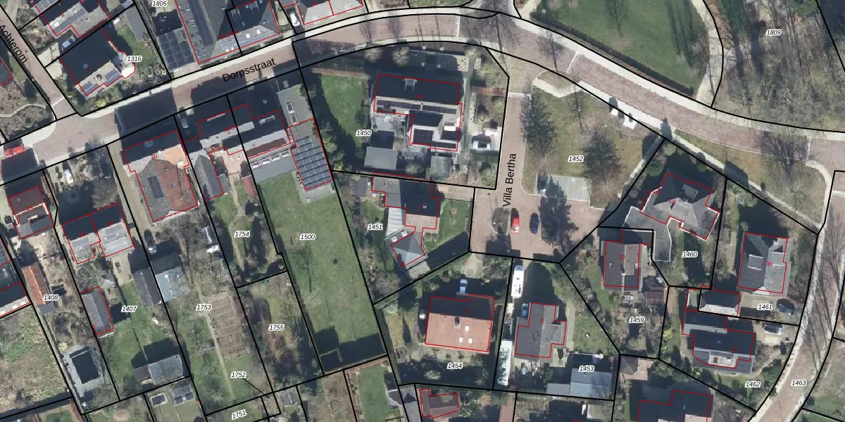 Het perceel waarop Villa Bertha 4 staat heeft een oppervlakte van 695 m². Dit is een groot perceel. De perceeloppervlakte wordt geregistreerd door het Kadaster. Gedetailleerde informatie over de maten van dit perceel kunt u vinden in het rapport Kadastrale kaart met maatvoering van Villa Bertha 4.