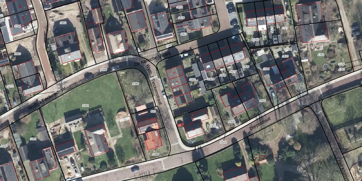 Weth J Tieckenstraat 39 is gelegen op kadastraal perceel AGL00B1502. Deze kadastrale aanduiding is uniek en wordt gebruikt door het Kadaster om eigendomsrechten en andere zakelijke rechten vast te leggen. Het perceel maakt onderdeel uit van de kadastrale gemeente Angerlo.
