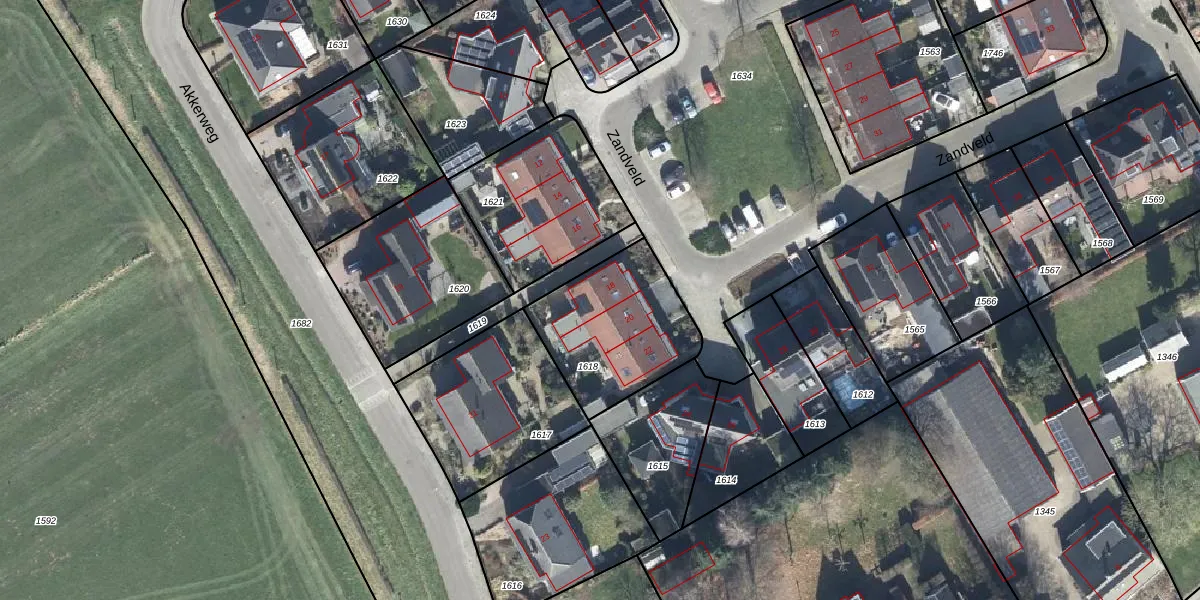 Zandveld 18 is gelegen op kadastraal perceel AGL00B1618. Deze kadastrale aanduiding is uniek en wordt gebruikt door het Kadaster om eigendomsrechten en andere zakelijke rechten vast te leggen. Het perceel maakt onderdeel uit van de kadastrale gemeente Angerlo.
