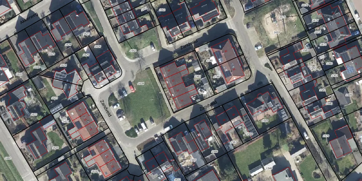 Het perceel waarop Zandveld 29 staat heeft een oppervlakte van 670 m². Dit is een groot perceel. De perceeloppervlakte wordt geregistreerd door het Kadaster. Gedetailleerde informatie over de maten van dit perceel kunt u vinden in het rapport Kadastrale kaart met maatvoering van Zandveld 29.
