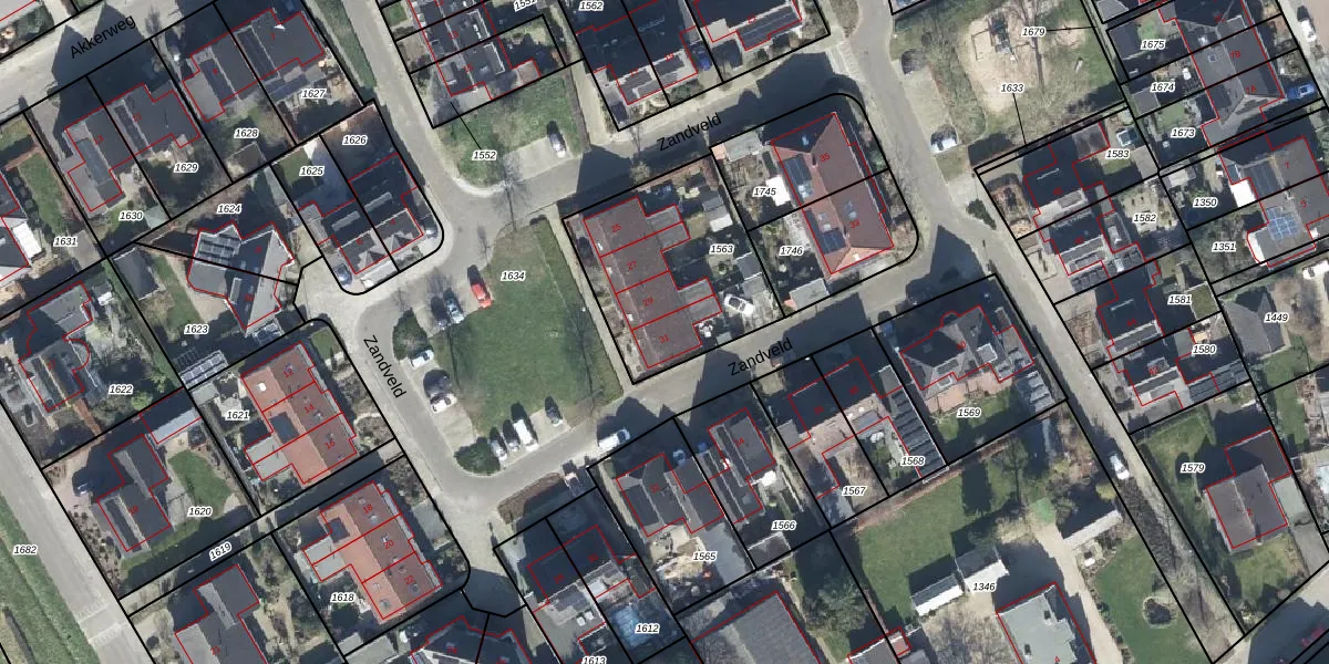 Het perceel waarop Zandveld 31 staat heeft een oppervlakte van 670 m². Dit is een groot perceel. De perceeloppervlakte wordt geregistreerd door het Kadaster. Gedetailleerde informatie over de maten van dit perceel kunt u vinden in het rapport Kadastrale kaart met maatvoering van Zandveld 31.