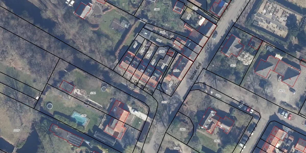 Het perceel waarop Dammerkade 2 staat heeft een oppervlakte van 185 m². Dit is een middelgroot perceel. De perceeloppervlakte wordt geregistreerd door het Kadaster. Gedetailleerde informatie over de maten van dit perceel kunt u vinden in het rapport Kadastrale kaart met maatvoering van Dammerkade 2.