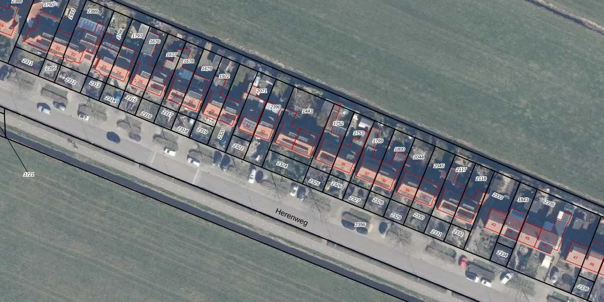 Het perceel waarop Herenweg 34 staat heeft een oppervlakte van 326 m². Dit is een groot perceel. De perceeloppervlakte wordt geregistreerd door het Kadaster. Gedetailleerde informatie over de maten van dit perceel kunt u vinden in het rapport Kadastrale kaart met maatvoering van Herenweg 34.