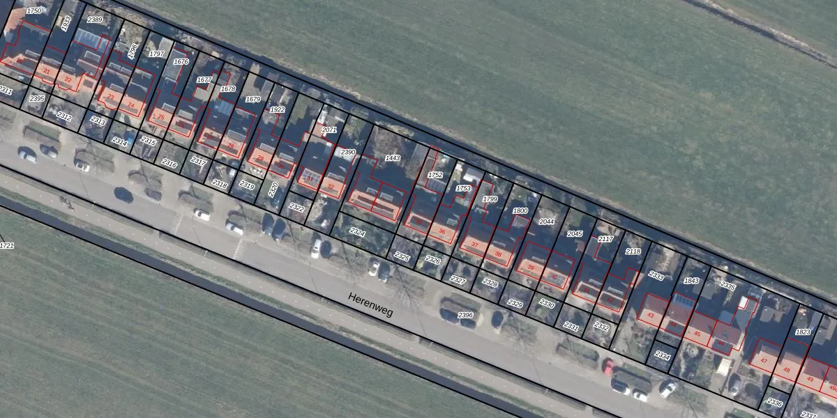 Het perceel waarop Herenweg 35 staat heeft een oppervlakte van 163 m². Dit is een middelgroot perceel. De perceeloppervlakte wordt geregistreerd door het Kadaster. Gedetailleerde informatie over de maten van dit perceel kunt u vinden in het rapport Kadastrale kaart met maatvoering van Herenweg 35.