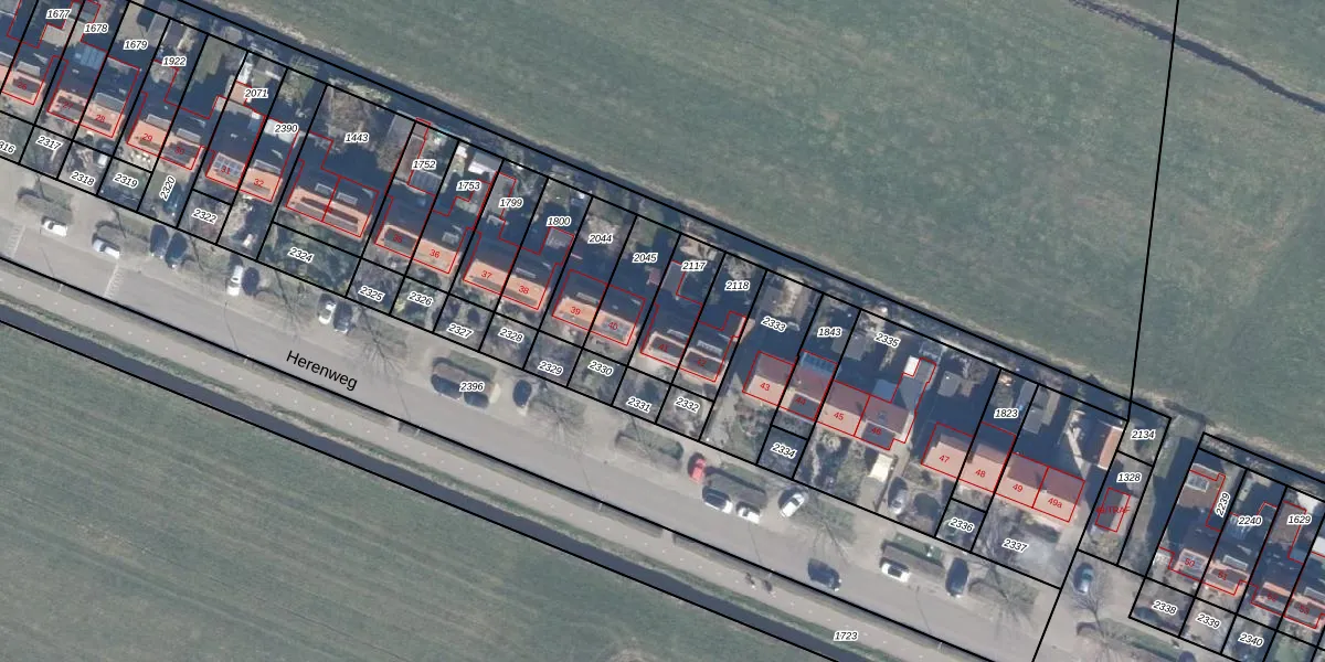 Het perceel waarop Herenweg 41 staat heeft een oppervlakte van 159 m². Dit is een middelgroot perceel. De perceeloppervlakte wordt geregistreerd door het Kadaster. Gedetailleerde informatie over de maten van dit perceel kunt u vinden in het rapport Kadastrale kaart met maatvoering van Herenweg 41.