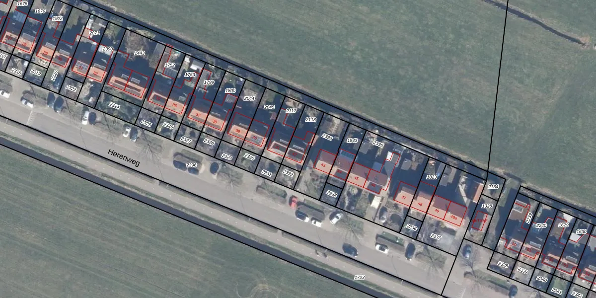 Het perceel waarop Herenweg 42 staat heeft een oppervlakte van 159 m². Dit is een middelgroot perceel. De perceeloppervlakte wordt geregistreerd door het Kadaster. Gedetailleerde informatie over de maten van dit perceel kunt u vinden in het rapport Kadastrale kaart met maatvoering van Herenweg 42.