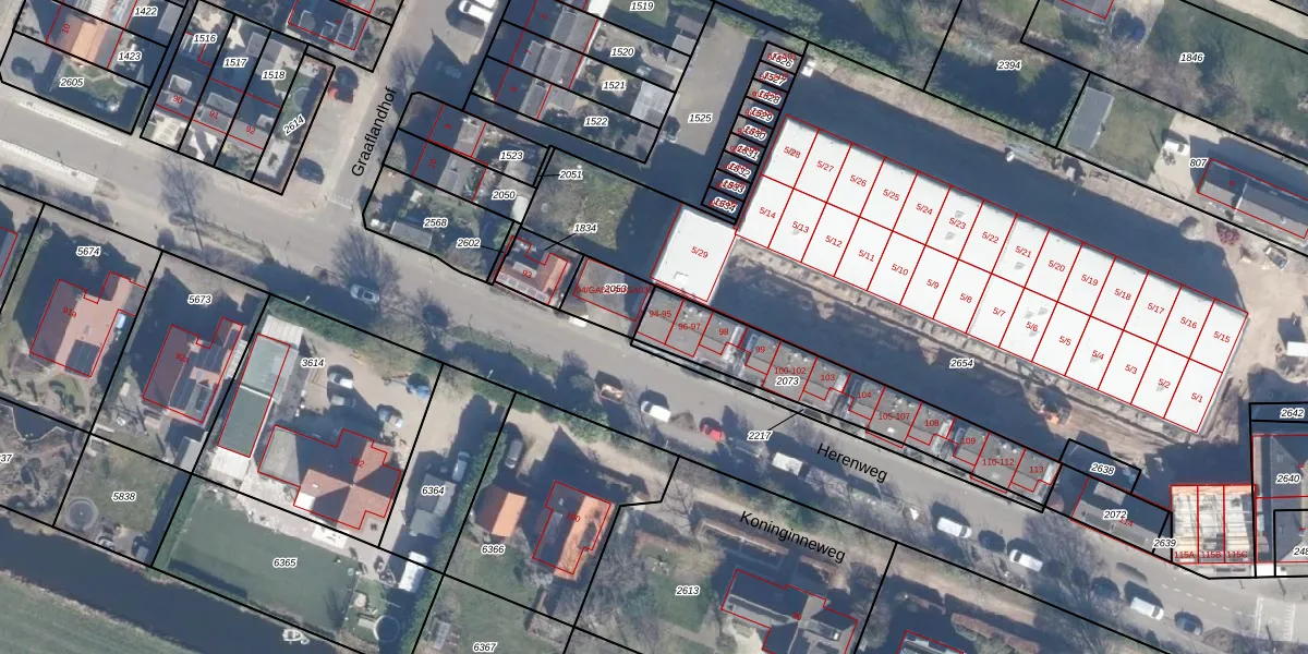 Het perceel waarop Herenweg 95 staat heeft een oppervlakte van 535 m². Dit is een groot perceel. De perceeloppervlakte wordt geregistreerd door het Kadaster. Gedetailleerde informatie over de maten van dit perceel kunt u vinden in het rapport Kadastrale kaart met maatvoering van Herenweg 95.