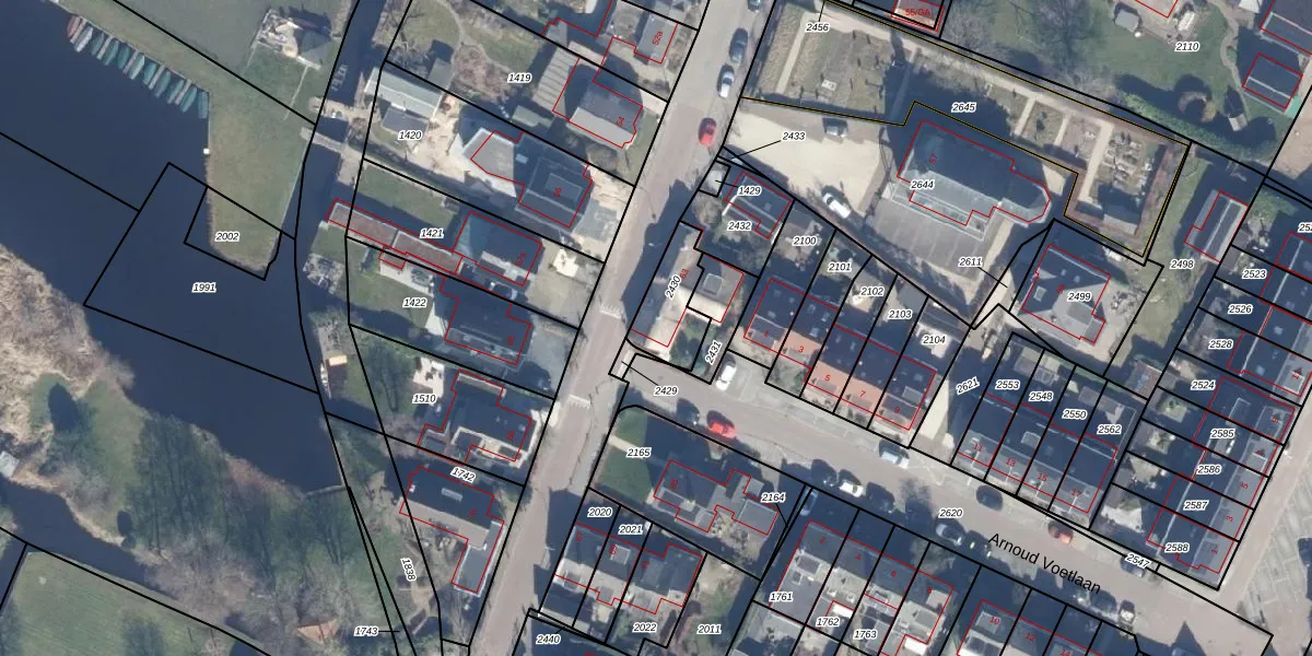 Het adres is gelegen op perceel 2430 in de sectie A en de kadastrale gemeente Ankeveen. De kadastrale aanduiding is aldus AKV00-A-2430. Het perceel is kleiner dan gemiddeld in Ankeveen. Het perceel is 162 m² groot, terwijl het gemiddelde ligt op 2189,7 m². Het grootste perceel in de kadastrale gemeente is 18,2 ha. Het kleinste perceel heeft een oppervlakte van 1 m². Dit is het enige adres dat aanwezig is op het perceel. In de Basisregistratie Kadaster (BRK) werden de grenzen van het perceel geregistreerd op 17-04-2007.