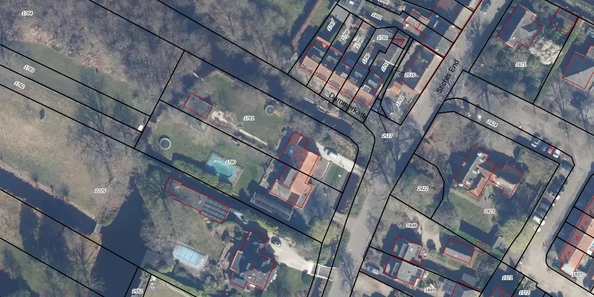 Het perceel waarop Stichts End 8 staat heeft een oppervlakte van 1210 m². Dit is een zeer groot perceel. De perceeloppervlakte wordt geregistreerd door het Kadaster. Gedetailleerde informatie over de maten van dit perceel kunt u vinden in het rapport Kadastrale kaart met maatvoering van Stichts End 8.