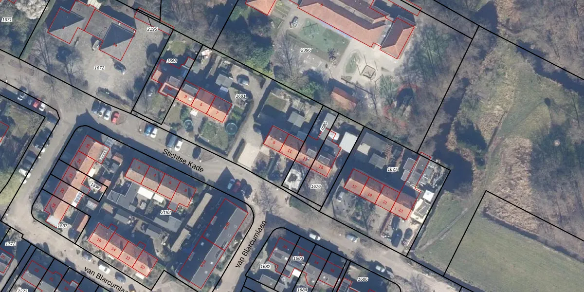 Het perceel waarop Stichtse Kade 11 staat heeft een oppervlakte van 1531 m². Dit is een zeer groot perceel. De perceeloppervlakte wordt geregistreerd door het Kadaster. Gedetailleerde informatie over de maten van dit perceel kunt u vinden in het rapport Kadastrale kaart met maatvoering van Stichtse Kade 11.