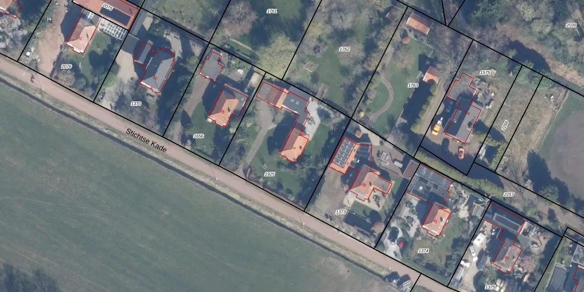 Het perceel waarop Stichtse Kade 37 staat heeft een oppervlakte van 1210 m². Dit is een zeer groot perceel. De perceeloppervlakte wordt geregistreerd door het Kadaster. Gedetailleerde informatie over de maten van dit perceel kunt u vinden in het rapport Kadastrale kaart met maatvoering van Stichtse Kade 37.