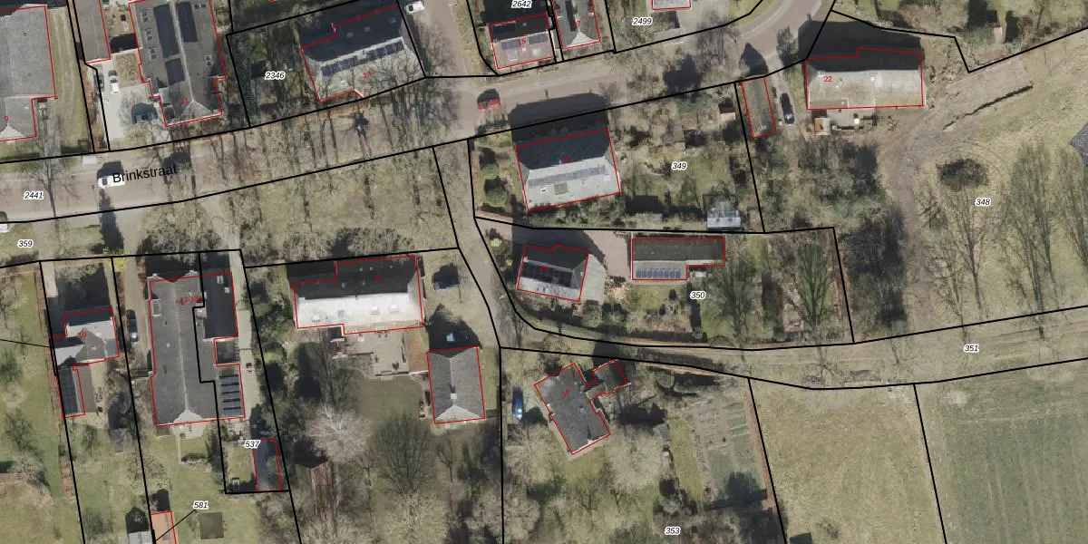 Brinkstraat 18 is gelegen op kadastraal perceel ALO00T350. Deze kadastrale aanduiding is uniek en wordt gebruikt door het Kadaster om eigendomsrechten en andere zakelijke rechten vast te leggen. Het perceel maakt onderdeel uit van de kadastrale gemeente Anloo.