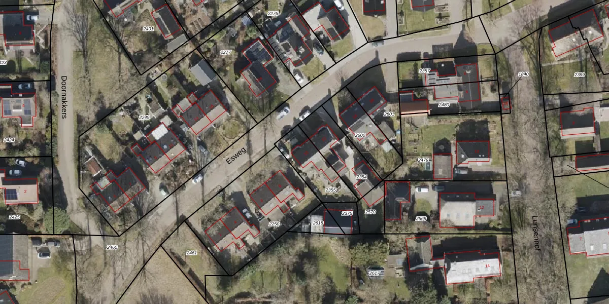 Gebruik de zoekbalk of klik op een perceel voor informatie over de adressen binnen dit perceel.
