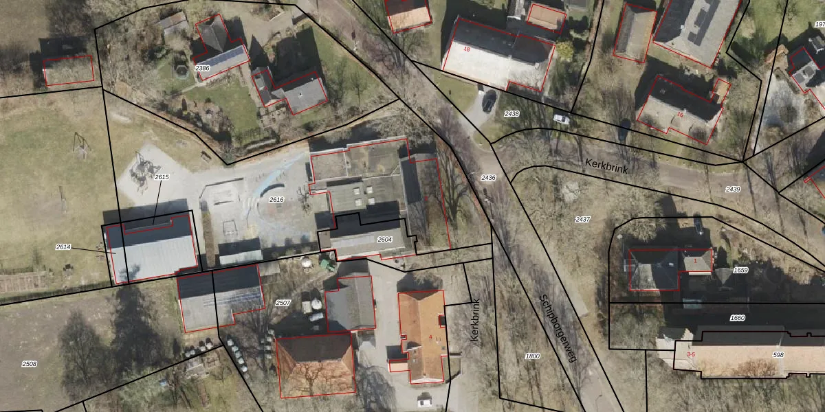 Het perceel waarop Kerkbrink 2 staat heeft een oppervlakte van 2335 m². Dit is een zeer groot perceel. De perceeloppervlakte wordt geregistreerd door het Kadaster. Gedetailleerde informatie over de maten van dit perceel kunt u vinden in het rapport Kadastrale kaart met maatvoering van Kerkbrink 2.