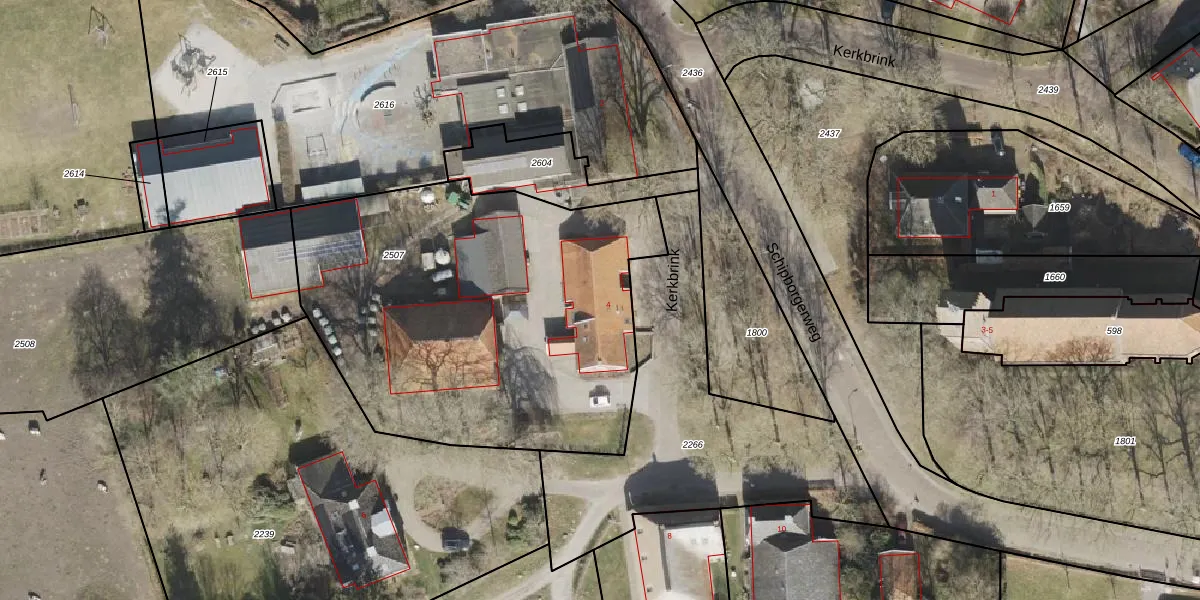 Het perceel waarop Kerkbrink 4 staat heeft een oppervlakte van 2206 m². Dit is een zeer groot perceel. De perceeloppervlakte wordt geregistreerd door het Kadaster. Gedetailleerde informatie over de maten van dit perceel kunt u vinden in het rapport Kadastrale kaart met maatvoering van Kerkbrink 4.