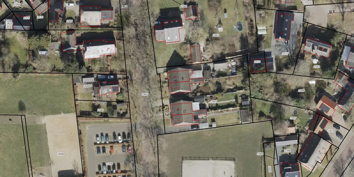Het perceel waarop Lunsenhof 13 staat heeft een oppervlakte van 1870 m². Dit is een zeer groot perceel. De perceeloppervlakte wordt geregistreerd door het Kadaster. Gedetailleerde informatie over de maten van dit perceel kunt u vinden in het rapport Kadastrale kaart met maatvoering van Lunsenhof 13.