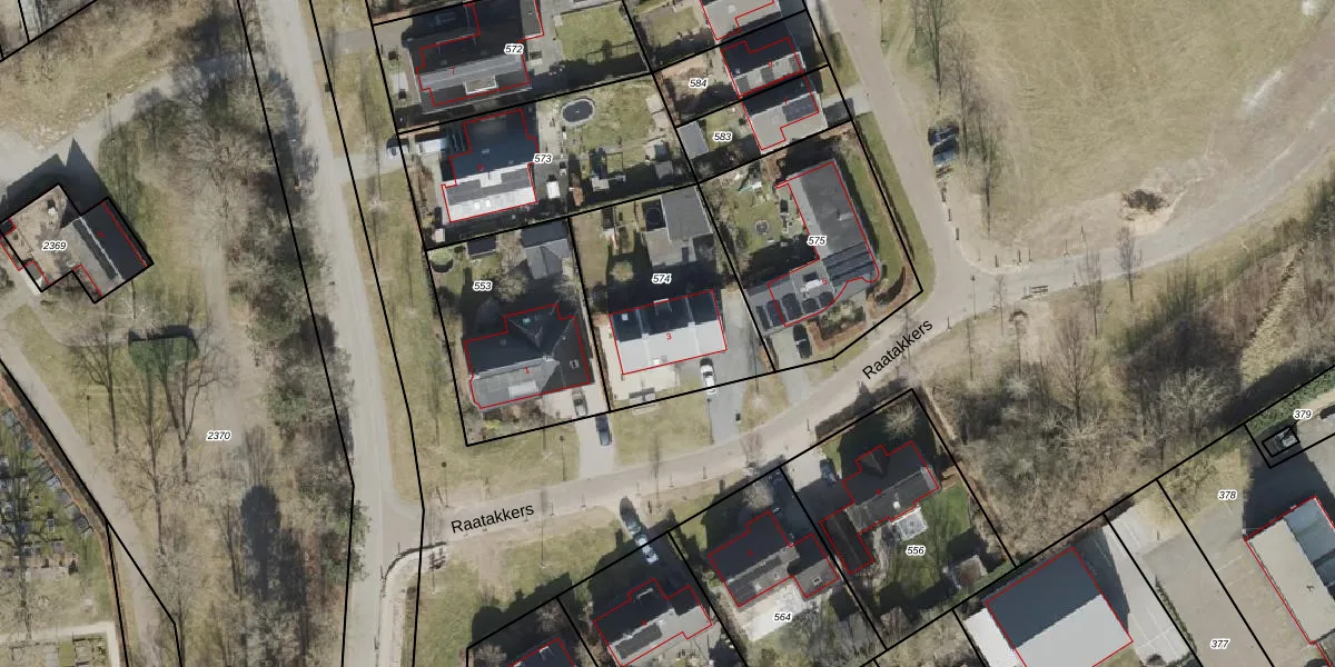 Het perceel waarop Raatakkers 3 staat heeft een oppervlakte van 685 m². Dit is een groot perceel. De perceeloppervlakte wordt geregistreerd door het Kadaster. Gedetailleerde informatie over de maten van dit perceel kunt u vinden in het rapport Kadastrale kaart met maatvoering van Raatakkers 3.