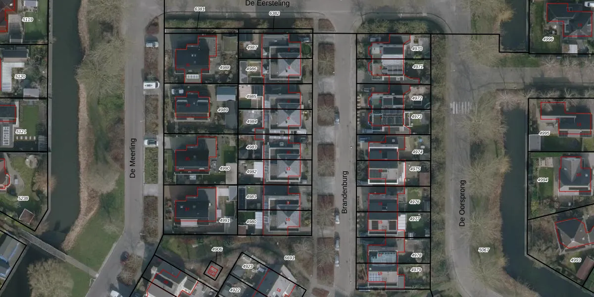Het perceel waarop Brandenburg 10 staat heeft een oppervlakte van 213 m². Dit is een middelgroot perceel. De perceeloppervlakte wordt geregistreerd door het Kadaster. Gedetailleerde informatie over de maten van dit perceel kunt u vinden in het rapport Kadastrale kaart met maatvoering van Brandenburg 10.