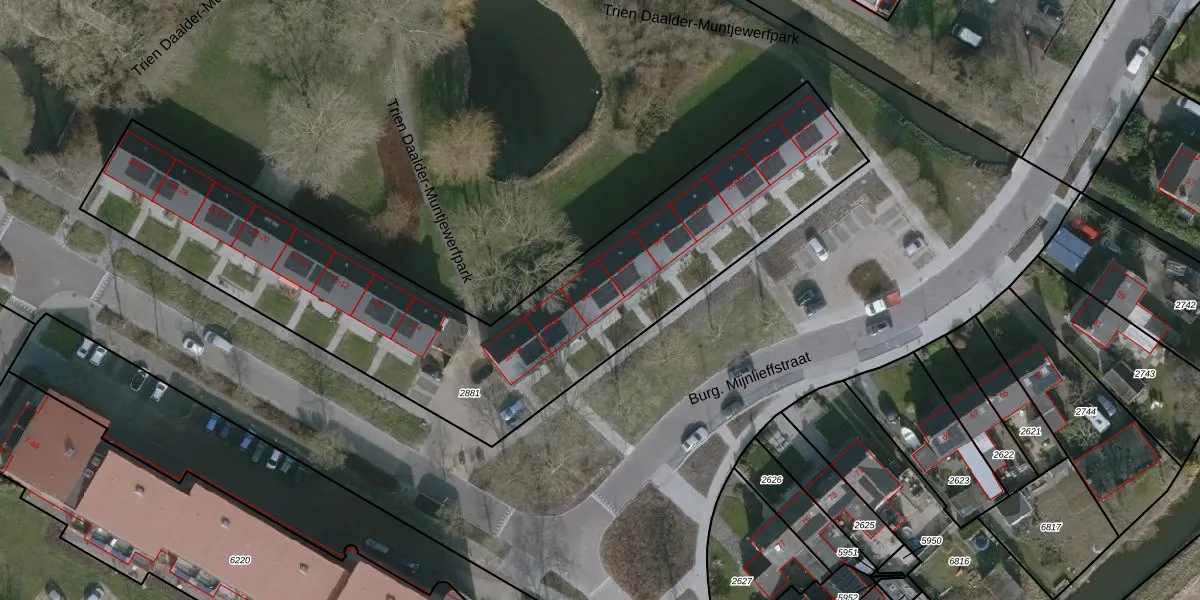 Het perceel waarop Burg. Mijnlieffstraat 44 staat heeft een oppervlakte van 2445 m². Dit is een zeer groot perceel. De perceeloppervlakte wordt geregistreerd door het Kadaster. Gedetailleerde informatie over de maten van dit perceel kunt u vinden in het rapport Kadastrale kaart met maatvoering van Burg. Mijnlieffstraat 44.