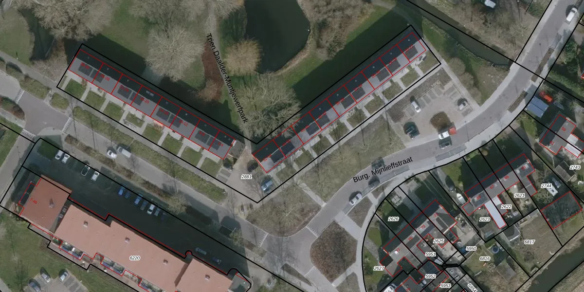 Het perceel waarop Burg. Mijnlieffstraat 48 staat heeft een oppervlakte van 2445 m². Dit is een zeer groot perceel. De perceeloppervlakte wordt geregistreerd door het Kadaster. Gedetailleerde informatie over de maten van dit perceel kunt u vinden in het rapport Kadastrale kaart met maatvoering van Burg. Mijnlieffstraat 48.