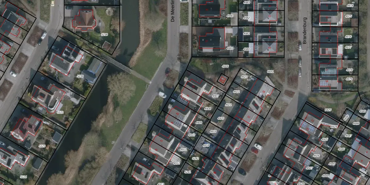 Het perceel waarop De Meerling 41 staat heeft een oppervlakte van 213 m². Dit is een middelgroot perceel. De perceeloppervlakte wordt geregistreerd door het Kadaster. Gedetailleerde informatie over de maten van dit perceel kunt u vinden in het rapport Kadastrale kaart met maatvoering van De Meerling 41.
