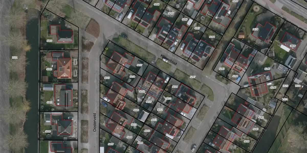 Het perceel waarop Klaverblad 2 staat heeft een oppervlakte van 197 m². Dit is een middelgroot perceel. De perceeloppervlakte wordt geregistreerd door het Kadaster. Gedetailleerde informatie over de maten van dit perceel kunt u vinden in het rapport Kadastrale kaart met maatvoering van Klaverblad 2.