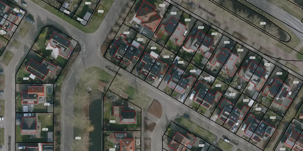 Het perceel waarop Klaverblad 7 staat heeft een oppervlakte van 259 m². Dit is een middelgroot perceel. De perceeloppervlakte wordt geregistreerd door het Kadaster. Gedetailleerde informatie over de maten van dit perceel kunt u vinden in het rapport Kadastrale kaart met maatvoering van Klaverblad 7.
