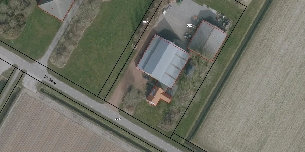 Het perceel waarop Kleiweg 6 staat heeft een oppervlakte van 5000 m². Dit is een zeer groot perceel. De perceeloppervlakte wordt geregistreerd door het Kadaster. Gedetailleerde informatie over de maten van dit perceel kunt u vinden in het rapport Kadastrale kaart met maatvoering van Kleiweg 6.