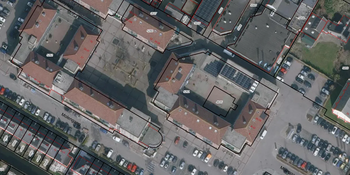 Het perceel waarop Molengang 68 staat heeft een oppervlakte van 2450 m². Dit is een zeer groot perceel. De perceeloppervlakte wordt geregistreerd door het Kadaster. Gedetailleerde informatie over de maten van dit perceel kunt u vinden in het rapport Kadastrale kaart met maatvoering van Molengang 68.