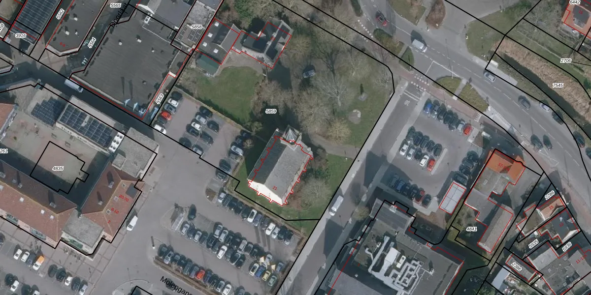Het perceel waarop Molenvaart 21 staat heeft een oppervlakte van 3881 m². Dit is een zeer groot perceel. De perceeloppervlakte wordt geregistreerd door het Kadaster. Gedetailleerde informatie over de maten van dit perceel kunt u vinden in het rapport Kadastrale kaart met maatvoering van Molenvaart 21.