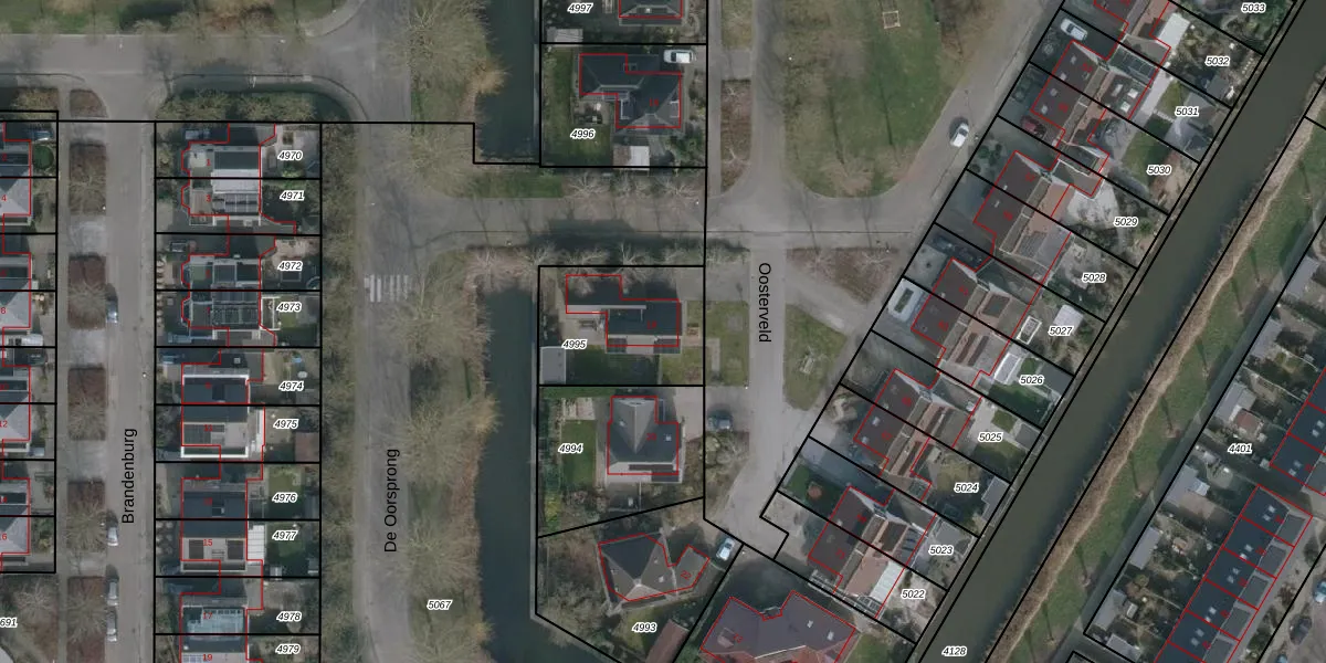 Het perceel waarop Oosterveld 18 staat heeft een oppervlakte van 452 m². Dit is een groot perceel. De perceeloppervlakte wordt geregistreerd door het Kadaster. Gedetailleerde informatie over de maten van dit perceel kunt u vinden in het rapport Kadastrale kaart met maatvoering van Oosterveld 18.