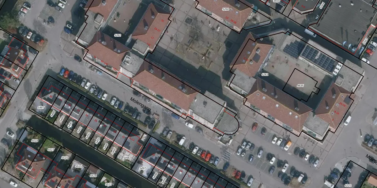 Het perceel waarop Sluisplein 7 staat heeft een oppervlakte van 2640 m². Dit is een zeer groot perceel. De perceeloppervlakte wordt geregistreerd door het Kadaster. Gedetailleerde informatie over de maten van dit perceel kunt u vinden in het rapport Kadastrale kaart met maatvoering van Sluisplein 7.