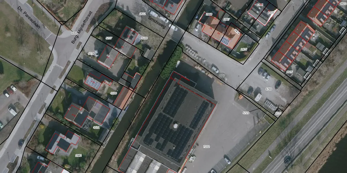 Het perceel waarop Smidsweg 55 staat heeft een oppervlakte van 4755 m². Dit is een zeer groot perceel. De perceeloppervlakte wordt geregistreerd door het Kadaster. Gedetailleerde informatie over de maten van dit perceel kunt u vinden in het rapport Kadastrale kaart met maatvoering van Smidsweg 55.