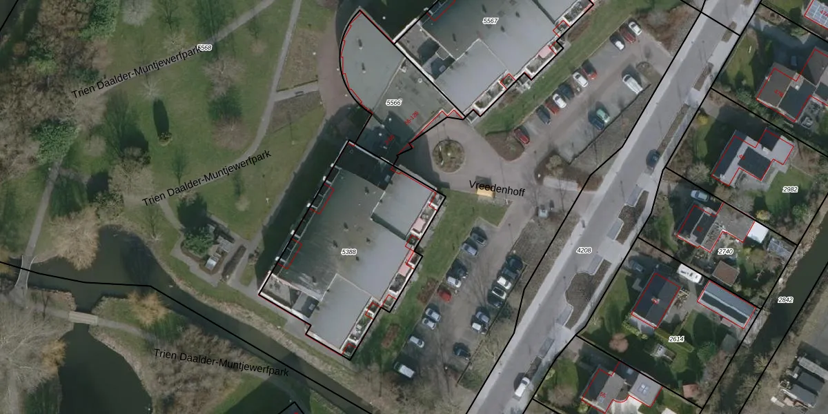 Het perceel waarop Vreedenhoff 22 staat heeft een oppervlakte van 1240 m². Dit is een zeer groot perceel. De perceeloppervlakte wordt geregistreerd door het Kadaster. Gedetailleerde informatie over de maten van dit perceel kunt u vinden in het rapport Kadastrale kaart met maatvoering van Vreedenhoff 22.