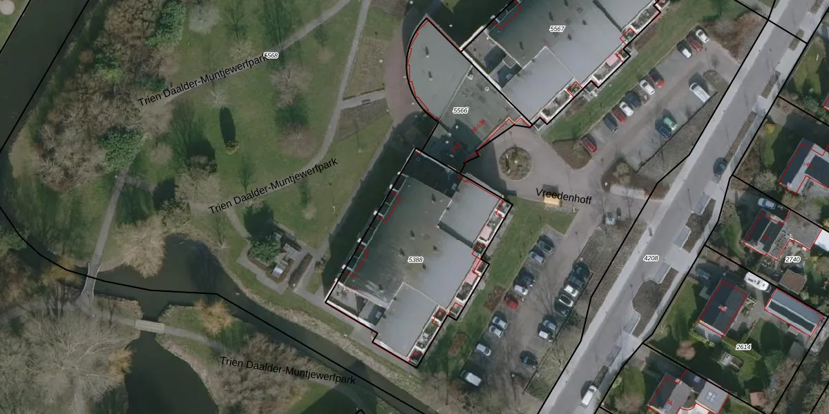 Het perceel waarop Vreedenhoff 34 staat heeft een oppervlakte van 1240 m². Dit is een zeer groot perceel. De perceeloppervlakte wordt geregistreerd door het Kadaster. Gedetailleerde informatie over de maten van dit perceel kunt u vinden in het rapport Kadastrale kaart met maatvoering van Vreedenhoff 34.