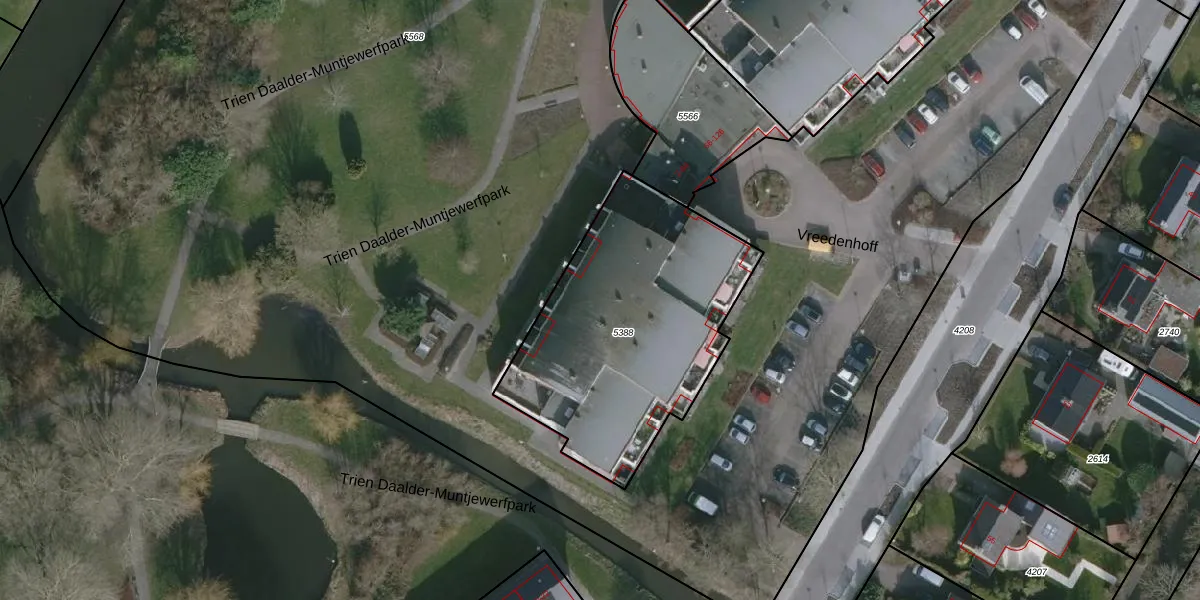 Het perceel waarop Vreedenhoff 36 staat heeft een oppervlakte van 1240 m². Dit is een zeer groot perceel. De perceeloppervlakte wordt geregistreerd door het Kadaster. Gedetailleerde informatie over de maten van dit perceel kunt u vinden in het rapport Kadastrale kaart met maatvoering van Vreedenhoff 36.