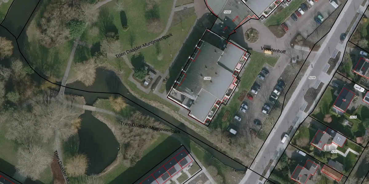 Het perceel waarop Vreedenhoff 40 staat heeft een oppervlakte van 1240 m². Dit is een zeer groot perceel. De perceeloppervlakte wordt geregistreerd door het Kadaster. Gedetailleerde informatie over de maten van dit perceel kunt u vinden in het rapport Kadastrale kaart met maatvoering van Vreedenhoff 40.