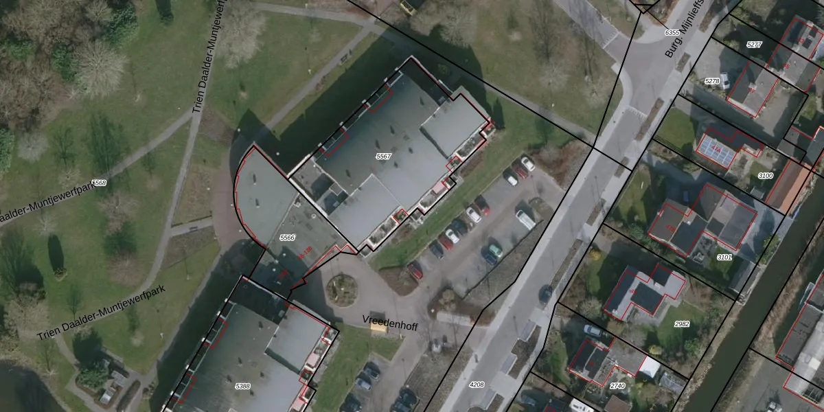 Het perceel waarop Vreedenhoff 72 staat heeft een oppervlakte van 1185 m². Dit is een zeer groot perceel. De perceeloppervlakte wordt geregistreerd door het Kadaster. Gedetailleerde informatie over de maten van dit perceel kunt u vinden in het rapport Kadastrale kaart met maatvoering van Vreedenhoff 72.