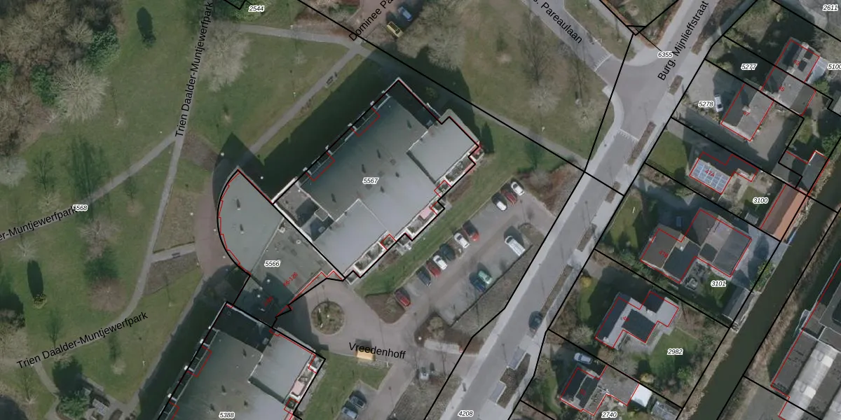 Het perceel waarop Vreedenhoff 74 staat heeft een oppervlakte van 1185 m². Dit is een zeer groot perceel. De perceeloppervlakte wordt geregistreerd door het Kadaster. Gedetailleerde informatie over de maten van dit perceel kunt u vinden in het rapport Kadastrale kaart met maatvoering van Vreedenhoff 74.
