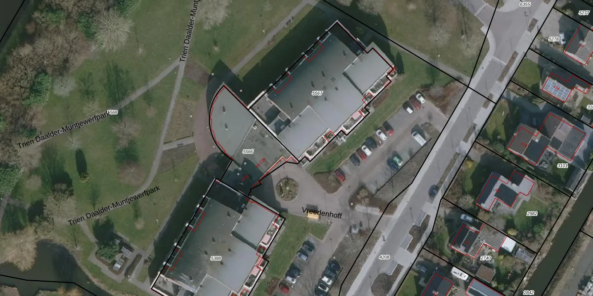 Het perceel waarop Vreedenhoff 88 staat heeft een oppervlakte van 1185 m². Dit is een zeer groot perceel. De perceeloppervlakte wordt geregistreerd door het Kadaster. Gedetailleerde informatie over de maten van dit perceel kunt u vinden in het rapport Kadastrale kaart met maatvoering van Vreedenhoff 88.