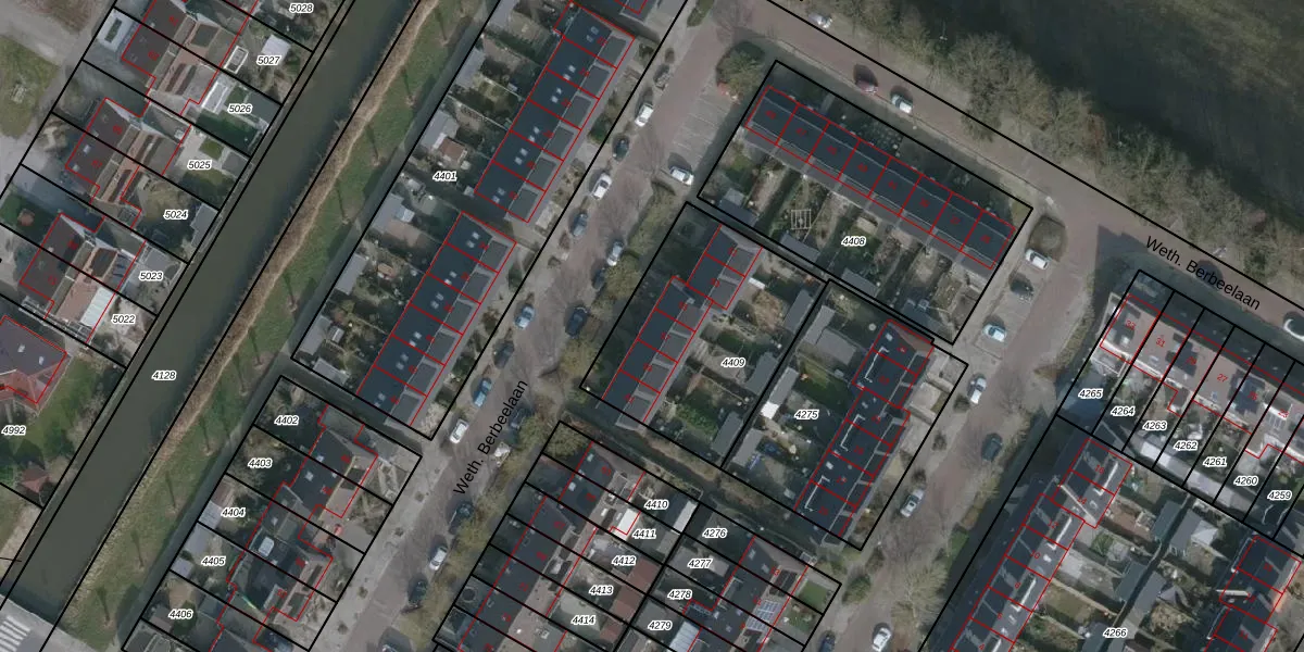 Het perceel waarop Weth. Berbeelaan 57 staat heeft een oppervlakte van 822 m². Dit is een groot perceel. De perceeloppervlakte wordt geregistreerd door het Kadaster. Gedetailleerde informatie over de maten van dit perceel kunt u vinden in het rapport Kadastrale kaart met maatvoering van Weth. Berbeelaan 57.