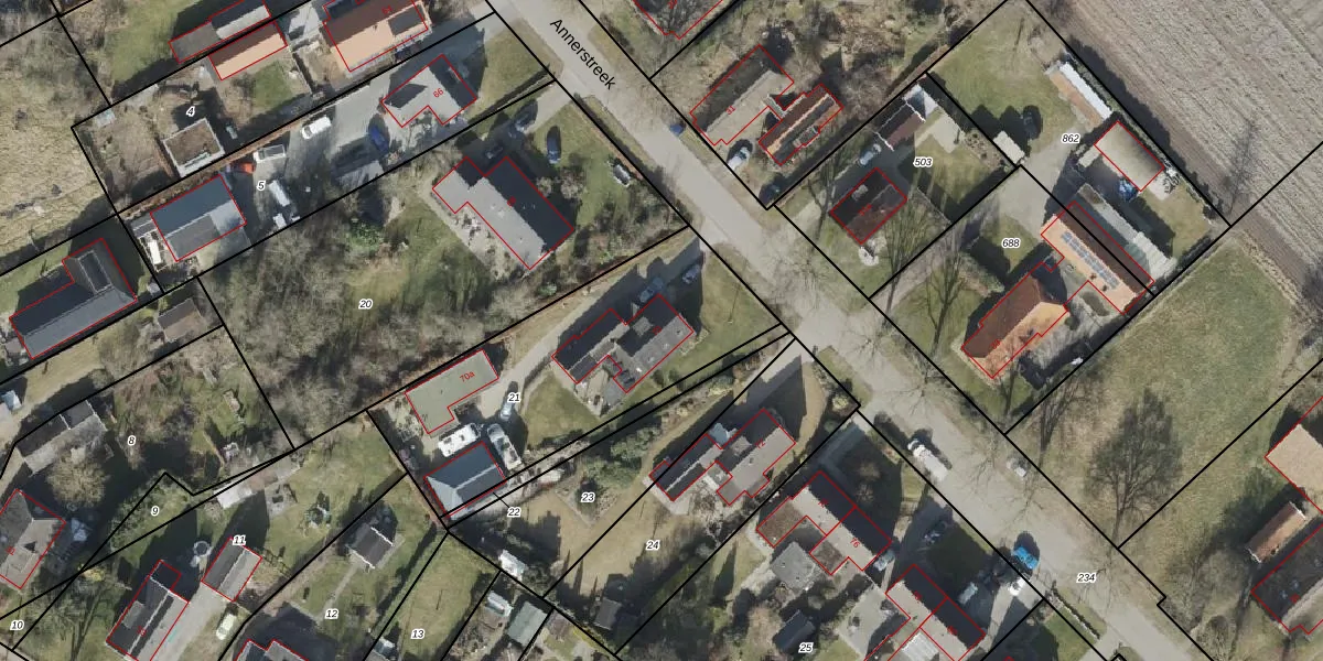 Annerstreek 70 is gelegen op kadastraal perceel ALO00Z21. Deze kadastrale aanduiding is uniek en wordt gebruikt door het Kadaster om eigendomsrechten en andere zakelijke rechten vast te leggen. Het perceel maakt onderdeel uit van de kadastrale gemeente Anloo.