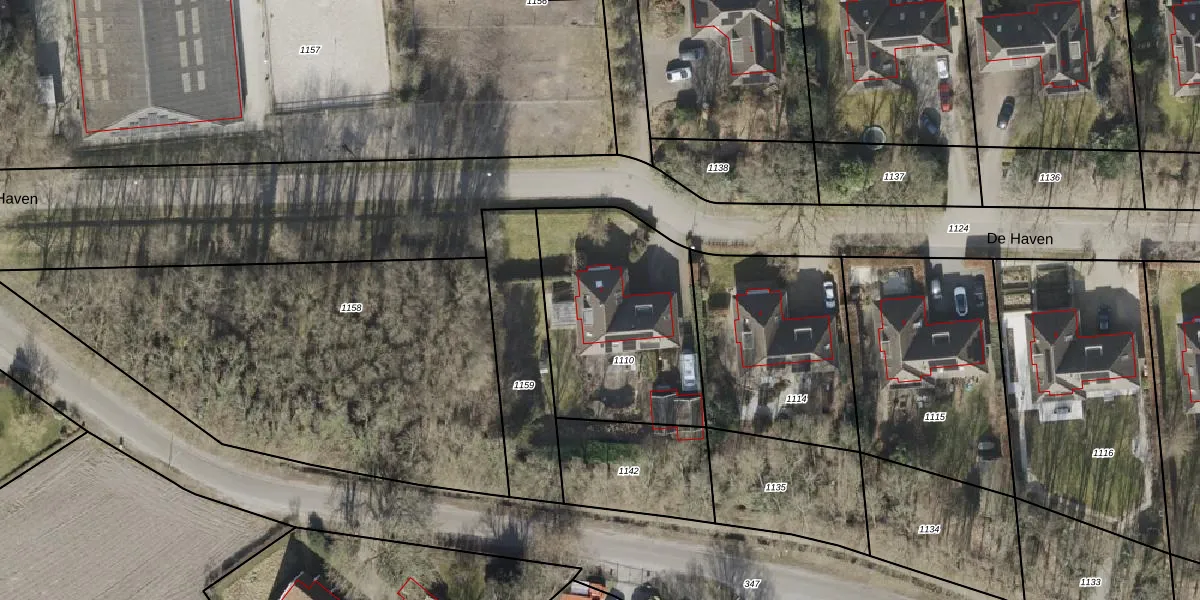 Het perceel waarop De Haven 2 staat heeft een oppervlakte van 854 m². Dit is een groot perceel. De perceeloppervlakte wordt geregistreerd door het Kadaster. Gedetailleerde informatie over de maten van dit perceel kunt u vinden in het rapport Kadastrale kaart met maatvoering van De Haven 2.