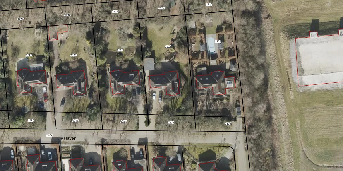 Het perceel waarop De Haven 9 staat heeft een oppervlakte van 1559 m². Dit is een zeer groot perceel. De perceeloppervlakte wordt geregistreerd door het Kadaster. Gedetailleerde informatie over de maten van dit perceel kunt u vinden in het rapport Kadastrale kaart met maatvoering van De Haven 9.